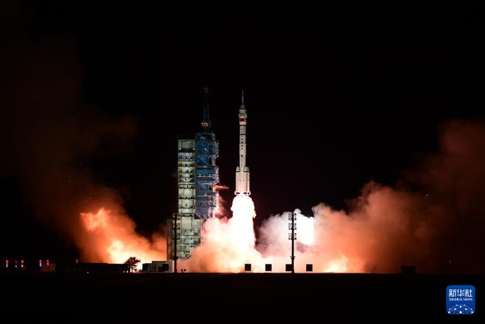 10月31日23时44分,搭载神舟二十一号载人飞船的长征二号F遥二十一运载火箭在酒泉卫星发射中心点火发射,约10分钟后,飞船与火箭成功分离,进入预定轨道,航天员乘组状态良好,发射取得圆满成功。新华社发(汪江波摄)